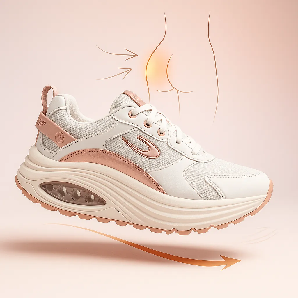 Con suola curva che ti spinge in avanti: cammini con meno fatica, scarichi ginocchia e schiena e attivi i glutei ad ogni passo.